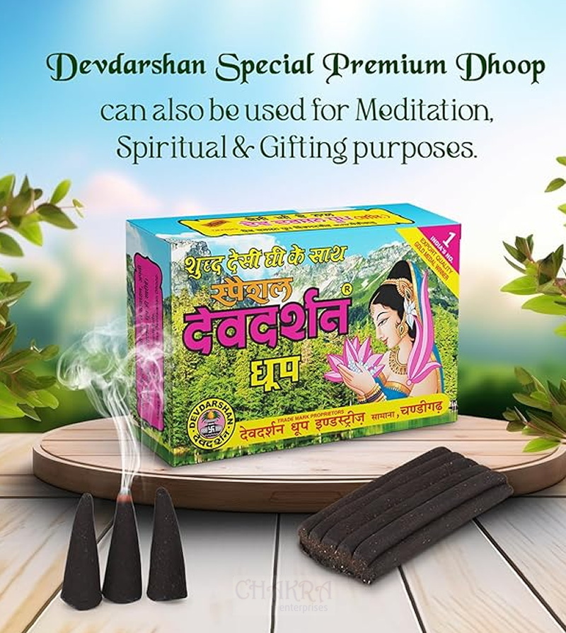 - Devdarshan Special Premium Dhoop is crafted using a blend of the ancient vedic recipes and modern techniques
