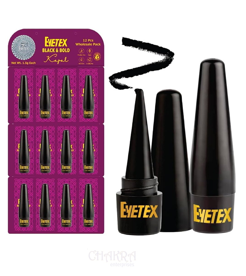 Eyetex pallavi Kajal Stick Black, Matte Finish, Irritation-Free safe for daily use & Gentle, Compact & Travel-Friendly, Natural Pigments & Waxes, Popular For Over 80 Years Pack Of 12 For Women