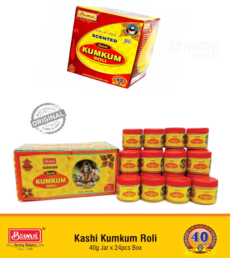 Bhavani Roli Kumkum refers to auspicious red powder used in Hindu rituals, often from the brand “Bhawani Serving Religion,” made from pure turmeric and lime for tilaks (forehead marks) on deities and devotees, symbolizing purity, devotion, and prosperity during daily poojas, festivals like Diwali, and ceremonies, signifying positive beginnings. It’s a sacred, vibrant, smooth paste applied after mixing with a drop of water, integral to Indian spiritual traditions.