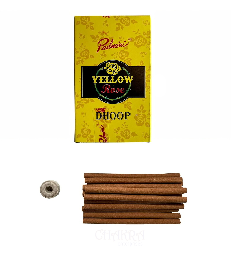 Yellow Rose DhoopInfuse your space with the warm and rich fragrance of Yellow Rose Dhoop. These dhoop sticks emit a delightful floral aroma that captures the essence of blooming yellow roses. The uplifting scent is perfect for creating a joyful and serene atmosphere, ideal for meditation, relaxation, and enhancing your spiritual practices. Yellow Rose Dhoop brings a touch of elegance and positivity to your surroundings, making every moment feel special and serene.Scent Profile: Floral, WarmBask in the rich and uplifting aroma of yellow roses.Perfect For:
